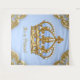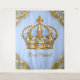 Fond de bannière géant pour baby shower prince avec de belles volutes dorées et couronne bébé bleu et or. Cette belle bannière de fond prince est facilement personnalisable avec le texte de votre choix. Vous pouvez également changer la couleur de fond et déplacer et redimensionner la couronne selon vos besoins.
