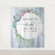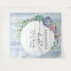 Conception de douche de mariée sur mesure avec une couronne de succulente rose bleue élégante et des bordures géométriques dorées.