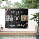 Fond de décoration élégant pour 30e anniversaire noir 2. Fond noir élégant avec des bandes aquarelles roses et texte blanc. Nom personnalisé, date, âge et texte Joyeux Anniversaire. Utilisez les tapisseries comme toile de fond pour la fête des 30 ans. Ajoutez vos photos - ancienne photo et nouvelle photo. Personnalisez le nom, la date et l'âge.