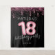 Fond de décor pour photobooth de fête d'anniversaire dix-huit ans pour fille avec un fond noir tendance, paillettes roses et confettis, 18 ballons roses à l'hélium, le nom de la fille qui fête son anniversaire et la date.