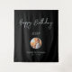 Cette tapisserie moderne est parfaite pour une fête d'anniversaire avec un thème de couleur noir et argent chic. Vos invités apprécieront prendre une photo avec ce fond de fête sophistiqué et se souviendront de votre journée spéciale. Le design présente un texte "Joyeux Anniversaire" écrit avec un pinceau argenté et un texte personnalisé. Vous pouvez personnaliser le nom, l'événement et la date en bas de la tapisserie. Merci !