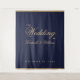 Un fond de mariage pour un mariage bleu marine et or. Sur un fond bleu marine, le mot Mariage et les noms sont écrits dans un script calligraphique élégant, le reste en majuscules. Tout le texte est doré et peut être personnalisé. Les bordures supérieure et inférieure sont en faux or.
