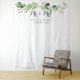 Un magnifique fond pour photos ou accessoire de photomaton pour votre mariage, présentant un arrangement aquarelle de branches d'eucalyptus vertes, "M. & Mme" en police de caractères gris foncé, personnalisé avec vos noms et date de mariage.