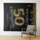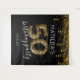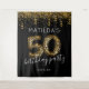 Fond de photobooth de fête d'anniversaire 50 ans amusant avec un fond noir tendance, paillettes dorées et confettis, 50 ballons en hélium imprimés léopard, le nom de la fille/garçon d'anniversaire et la date.