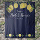 Avec des citrons et de la verdure sur un fond bleu marine, ce fond de photobooth de mariage botanique élégant peut être personnalisé avec vos informations d'événement spéciales. Conçu par Thisisnotme©
