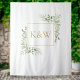Caractérisé par de délicates feuilles de verdure à l'aquarelle, ce fond de photomaton botanique chic peut être personnalisé avec vos initiales de monogramme en typographie dorée chic. Conçu par Thisisnotme©