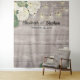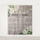 Modèles de fond de photomaton de mariage - Élégant blanc Fleurs d'hortensia aquarelle charmantes et guirlandes lumineuses sur fond en bois rustique.
