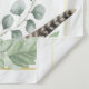 Fond de scène de Baby Shower éléphant doré avec des accents de style boho avec des plumes et des magnolias et un adorable éléphant bébé aquarelle. L'ajout idéal à votre décoration de baby shower neutre en matière de genre.