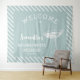 Bannière de bienvenue personnalisée tapisserie de fête de bachelor rétro en bleu et blanc avec un verre à cocktail est parfaite comme fond de scène photo de fête de bachelor. Célébrez votre douche de mariée dans le style avec le thème parfait de la fête cocktail en rose gras, le thème parfait pour la mariée nostalgique vintage des années 70 et ses demoiselles d'honneur.