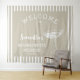 Bannière de bienvenue personnalisée tapisserie de fête de bachelor rétro en beige et blanc neutre avec un verre à cocktail est parfaite comme fond de scène photo de fête de bachelor. Célébrez votre douche de mariée avec style avec le thème parfait de la fête cocktail en rose gras, le thème parfait pour la mariée nostalgique vintage des années 70 et ses demoiselles d'honneur.