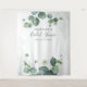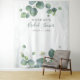 Fond de stand photo de feuillage de eucalyptus. Grande décoration murale de fête et bannière pour une baby shower de mariage sur le thème botanique moderne tendance. Avec un feuillage d'eucalyptus et un fond aquarelle rose pâle. Modifiez facilement les détails en cliquant sur le bouton "Personnaliser" ci-dessus.