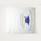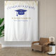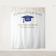 Fond pour les opportunités de photos de remise de diplôme moderne ! Paillettes en haut et en bas, streamers dorés du bord supérieur, chapeau de remise de diplôme et lettrage en bleu, modèle de nom en or. Promotion en lettrage de script à paillettes dorées avec modèle d'année en blanc. Ajoutez l'année, le nom et le nom de l'école.