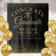 Un élégant fond pour photobooth de remise de diplômes avec les détails de votre diplômé dans une typographie chic sur un fond pailleté noir et or. Conçu par Thisisnotme©