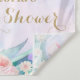 Fond pour baby shower violet et rose avec une jolie petite fille afro-américaine aux cheveux afro mignons portant un tutu rose et violet et un masque sur un joli fond floral rose et violet. Vous pouvez déplacer le bébé selon vos besoins, et vous pouvez ajouter et supprimer du texte selon vos besoins.