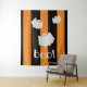Ajoutez une touche de plaisir festif à votre soirée d'Halloween avec cette mignonne tapisserie, mettant en vedette trois fantômes de dessin animé qui disent "Bouh!". Avec un fond rayé orange et noir lumineux et moderne, cette tapisserie est sûre d'apporter de la gaieté à votre décoration de vacances ou à vos réjouissances d'Halloween. Parfaite pour les soirées d'Halloween pour enfants et adultes, ou d'autres événements d'automne ou d'octobre. Le design audacieux et simple fait un excellent fond pour un photomaton. Peut être personnalisé avec votre propre texte, si vous le souhaitez. Joyeux Halloween !