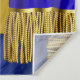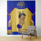 Fond de toile de fond pour baby shower de prince avec un adorable prince afro-américain ethnique sur un magnifique rideau royal bleu et or avec des glands en arrière-plan. Ce fond de toile de fond élégant pour baby shower de prince est facilement personnalisable avec le texte de votre choix dans le style de police que vous préférez. Vous pouvez également supprimer le texte graphique « un petit prince est en route », et vous pouvez déplacer et redimensionner le bébé selon vos besoins.