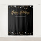 Installez une station de selfie photo qui fait office de panneau de bienvenue lors de votre prochaine fête de Noël de l'entreprise. Écriture "Joyeuses Fêtes" en or pour correspondre aux invitations de cette collection. Points de confettis blancs et or sur un fond noir élégant.