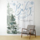 Décorez votre cabine photo baby shower ou la zone de fête avec ce bébé moderne il fait froid dehors baby shower garçon arrière-plan. Le design comprend une police de script de calligraphie moderne, des flocons de neige bleus et des arbres de forêt d'aquarelle. FOIL NON BLANC