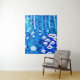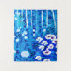 Tapisserie dans une illustration semi-abstraite d'une forêt d'imaginaires avec fleurs, feuillage, arbres et oiseaux, dans les tons bleu cobalt et blanc