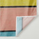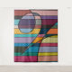 Ce design géométrique dynamique combine des rayures horizontales audacieuses dans des tons riches de violet, turquoise, rose, orange et jaune avec des courbes noires qui créent un contraste saisissant. L'interaction de lignes pointues et d'arcs doux lui donne une sensation moderne et énergique, tandis que les couleurs superposées évoquent un sens de l'équilibre et du mouvement. Parfaite pour ajouter une touche contemporaine et vivante à tout espace, cette composition abstraite attire l'oeil par son rythme ludique et son harmonie dynamique.