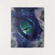 Oeil de dragon gothique mythique bleu médiéval avec encre violette et brouillard.