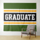 Ce design sportif et athlétique présente un texte GRADUATE gras à l'intérieur d'une large bande noire mise en évidence avec des doubles bandes de course blanches et orange jaunes sur des bandes extérieures vert forêt. Le texte de ce design peut être personnalisé.