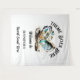 De belles huîtres iridescentes ouvertes ont une incrustation de nacre et une perle reposant à l'intérieur qui semblent scintiller et briller sur un fond blanc avec des modèles de texte noir modifiables pour votre formulation personnalisée. Cette suspension murale est idéale pour une fête ou un événement sur le thème de la plage, de la marine, du monde sous-marin ou des fruits de mer.