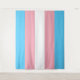 Le drapeau de la Transgender Pride a été créé par la transsexuelle américaine Monica Helms en 1999, et a été présenté pour la première fois lors d'une parade de la fierté à Phoenix, Arizona, États-Unis en 2000. Le drapeau représente la communauté transgenre et se compose de cinq bandes horizontales : deux bleu clair, deux roses et un blanc au centre. Les rayures du dessus et du dessous sont bleu clair, la couleur traditionnelle pour les garçons. Les rayures à côté sont roses, la couleur traditionnelle pour les bébés filles. La bande au milieu est blanche, pour ceux qui sont en transition ou se considèrent avoir un sexe neutre ou non défini.