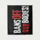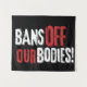 Montrez votre soutien au droit des femmes à l'autonomie corporelle avec cette tapisserie pro-choix "Bans Off Our Bodies" avec une police blanche et rouge de style grunge sur arrière - plan noir.