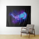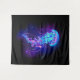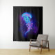 Grande méduse bleue, artistiquement dessinée, brillante, brillante, avec de longues tentacules sur arrière - plan noir avec bioluminescence violette. Méduse brillante.
