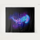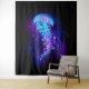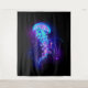 Grande méduse bleue, artistiquement dessinée, brillante, brillante, avec de longues tentacules sur arrière - plan noir avec bioluminescence violette. Méduse brillante.
