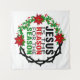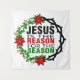 Jésus est la Raison de la Saison, ce dessin comporte une couronne d'épines et une couronne de noël avec un texte disant "Jésus est la Raison de la Saison".