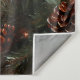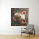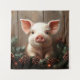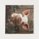 Tapisserie représentant une peinture à l'huile numérique d'un cochon mignon entouré de cônes de pins et de guirlande de pins avec lumières de Noël. L'arrière - plan en bois ajoute une touche rustique à l'oeuvre.