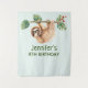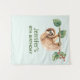 Tapisserie avec un paresseux adorable suspendu la tête en bas à une branche d'arbre. La branche d'arbre est décorée de feuilles tropicales et de baies.