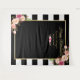 Joyeuse retraite fond floral à rayures noir et blanc.