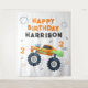 Happy Birthday Modern Monster Car Trucks Personnalisé Nom Tapestry présente le texte "Happy Birthday (ajoutez le nom)" avec un monstre de camion coloré. Fabuleux pour les fêtes d'anniversaire des enfants. Conçu par Evco Studio www.zazzle.com/store/evcostudio