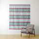 Illustration Joyeux Noël avec arbre de Noël et décoration étoilée sur arrière - plan rayé rouge et bleu
