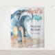 Le thème de surf pour les enfants comprend un fond de photo d'anniversaire avec une vague océanique à l'aquarelle, des planches de surf et des étoiles de mer sur la plage avec une typographie "Surf's Up" dans un lettrage rétro cool. Les couleurs tropicales (corail, jaune, turquoise et bleu marine) conviennent parfaitement pour un garçon ou une fille. Le nom et la date peuvent être personnalisés. Œuvre de KL Stock.
