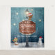 Apportez l'esprit de Noël à votre maison ou à votre bureau avec cette belle illustration d'un poteau de rue avec une lanterne en haut brillant la nuit. Le pôle a une planche en bois en forme de pétoncle attachée sur laquelle apparaissent les salutations festives "joyeux Noël et Bonne Année" et il est entouré par la neige en chute douce et les branches des arbres qui ont perdu leurs feuilles. Un mignon ours de dessin animé est assis sur le panneau et un écureuil et un bonhomme de neige apparaissent dans la neige en dessous. Tous portent des chapeaux de Père Noël. Un modèle pour votre entreprise ou nom de famille apparaît sous la lanterne.