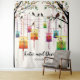 Tenture Lanternes colorées Cerisier Oiseaux Mariage/douche