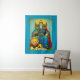 Tapisserie dans un design inspiré du tarot avec "L'Empereur" assis sur un trône, couronné et robed en bleu et rouge royal. Un lion puissant est assis à ses côtés, symbolisant la force et l'autorité. La carte symbolise la stabilité, le leadership et la discipline.