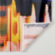 Tapisserie sur l'illustration du Taj Mahal, réfléchie dans l'eau, et soutenue par un ciel profond de couché de soleil corail orange