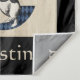 Le design fantasque pour les amoureux de tout âge d'Alice au pays des merveilles comprend la lettre majuscule / C initiale avec remplissage en arlequin noir et bleu et l'illustration originale en lapin blanc qui a été teinte, sur un panneau en faux bois et arrière - plan noir. Personnaliser avec le nom ou un autre message