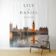 This elegant London Skyline watercolor wedding photo booth backdrop can be personalized with your information in modern typography. Designed by Thisisnotme©