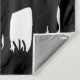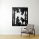 Cette tapisserie murale est noire et blanche avec le Petit chaperon rouge assis sous les arbres qui parle au loup cueillant des fleurs dans la forêt.