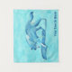 Un loup bleu stylisé (Canis lupus) projette une ombre en traversant un terrain enneigé. Customisez en ajoutant votre propre texte.