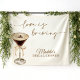 Définissez le ton de votre célébration avec cette tapisserie de bienvenue pour enterrement de vie de jeune fille surdimensionnée de la collection Love is Brewing. Avec une illustration chic de martini espresso et des détails modernes dessinés à la main, cette grande tapisserie constitue une pièce maîtresse étonnante pour l'entrée de votre fête, le fond de vos photos ou la table de vos cadeaux. Son thème ludique « L'amour est dans l'air » crée une atmosphère élégante et accueillante, parfaite pour les amateurs de café et de cocktails. Conçue pour être à la fois tendance et inoubliable, cette toile de fond transforme n'importe quel espace en le cadre ultime pour un enterrement de vie de jeune fille.