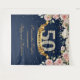 Magnifique boho marine et rose floral 50e anniversaire toile de fond tapisserie fête bannière, avec des roses florales roses douces épanouies et un arrangement de verdure fraîche sur fond bleu marine et paillettes dorées. Contactez-moi pour un autre ÂGE ou pour une personnalisation. Roses Blush
