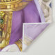 Tapisserie dans le portrait d'un chat gingembre, habillé comme une mariée aristocratique, médiévale, dans une robe violette, minutieusement taillée, et un voile
