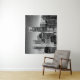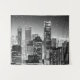 Tapisserie dans une illustration semi-abstraite du centre-ville de Manhattan en noir et blanc, illuminée de lumières de la ville, sous un ciel étoilé